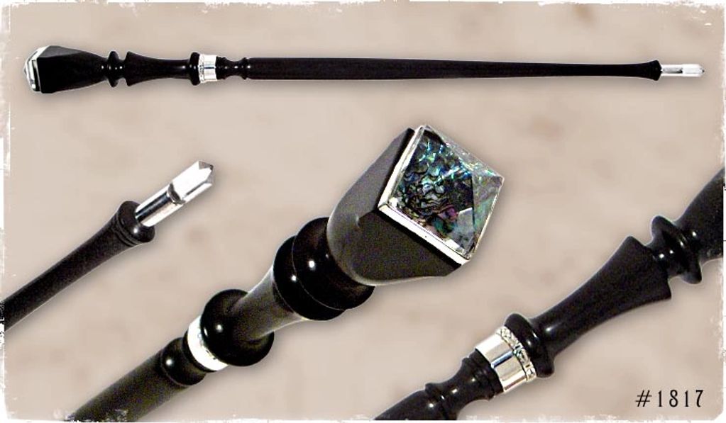Endcap: Abalone-backed Crystal Pyramid / Handle & Shaft: Gabon Ebony / Tip: Quartz / Accents: St Silver