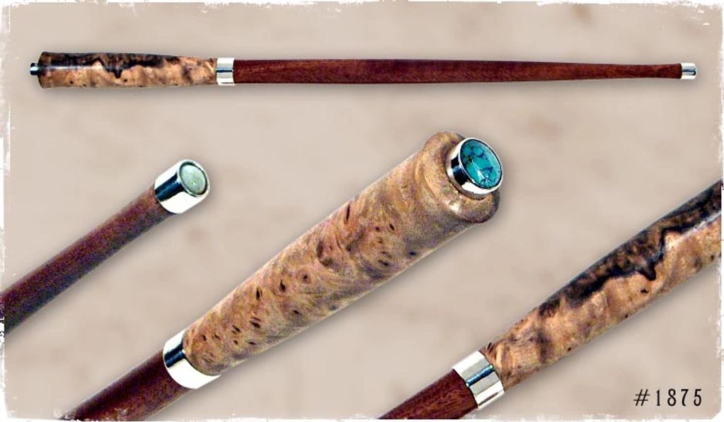 Endcap: Turquoise / Handle: Walnut Burl / Shaft: S.A. Mahogany / Tip: Crysophrase / Accents: St Silver