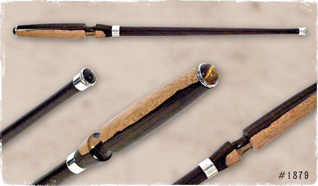 Endcap: Brown Tigereye / Handle: Zericote / Shaft: Blackwood / Tip: Black Tigereye / Accents: St Silver