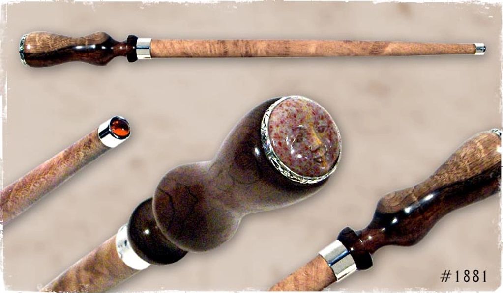 Endcap: Moonface / Handle: Mysterywood / Shaft: Locust Burl / Tip: Amber / Accents: St Silver