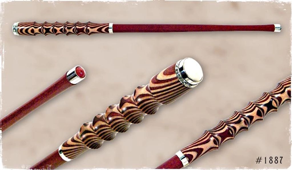 Endcap: Bone / Handle: Red-Ivory Diamond Wood / Shaft: Bloodwood / Tip: Carnelian / Accents: St Silver