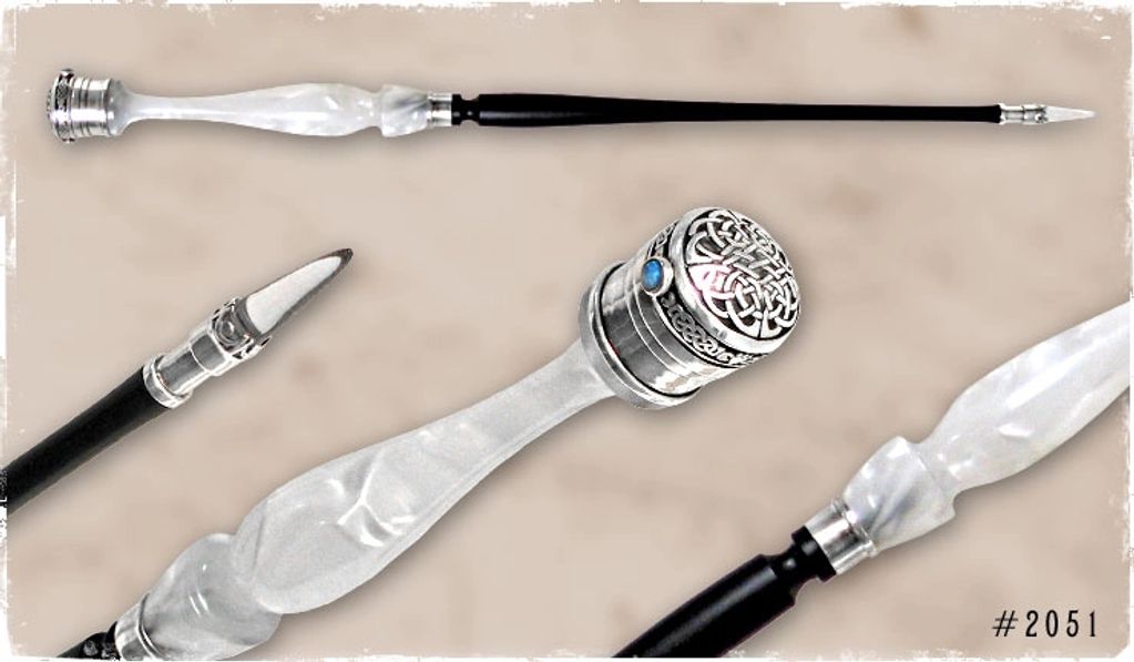 Endcap: St Silver Crown by Jerry Gehringer / Handle: White Celluloid / Shaft: Ebony / Tip: Quartz Bullet / Accents: St Silver